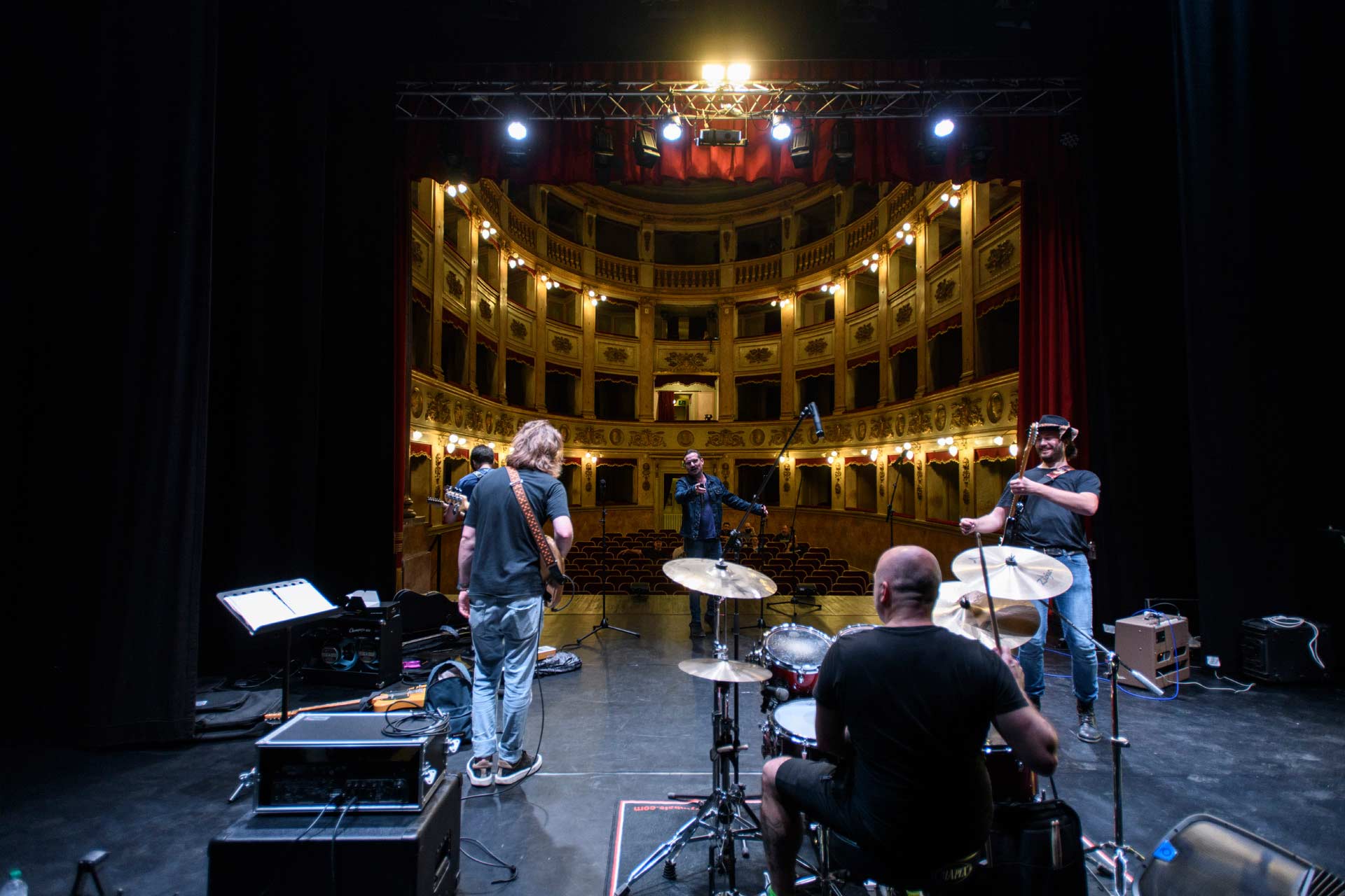 The tour, he explained, would serve the purpose of promoting some of his new songs part of an upcoming album, one of which, "SOGNI" (DREAMS) will be out soon on many of the known platforms online such as Spotify etc. So last week off we went to Bologna and to be precise in San Giovanni in Persiceto where he performed as a Guest during a contest for emerging artist that took place in a really pretty theater right in the center of the small touwn just outside Bologna. The theater that was rebuilt in the second half of the 18th century is a really cosy venue that was perfect for the pop-rock and soft ballads that Luca and his band presented.